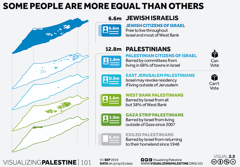 It should be obvious that Israel isn’t a democratic state; voting is the very basic right in a bourgeois democracy. Yet, people living in the West Bank and Gaza can’t vote in Israeli elections. Neither can all the Palestinians expelled by the Zionists during the Nakba.