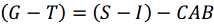 Where (G–T) is government spending minus taxation, the fiscal balance, almost always in deficit; (S–I), saving minus investment, which is the private sector balance, almost always in surplus for the economy as a whole; and CAB is the current account balance, which includes the trade balance, net transfers, and net income from abroad, almost always in deficit for India.